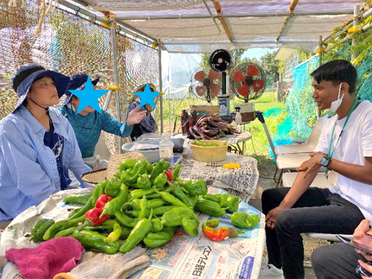 ネパールでは、家で野菜を作っている家庭が多いそうで、ピーマン、なす、オクラなどを慣れた手つきで次々と収穫していました。一人の学生さんがとれたてのピーマンをそのままかじり、「甘い!」と驚いていました。