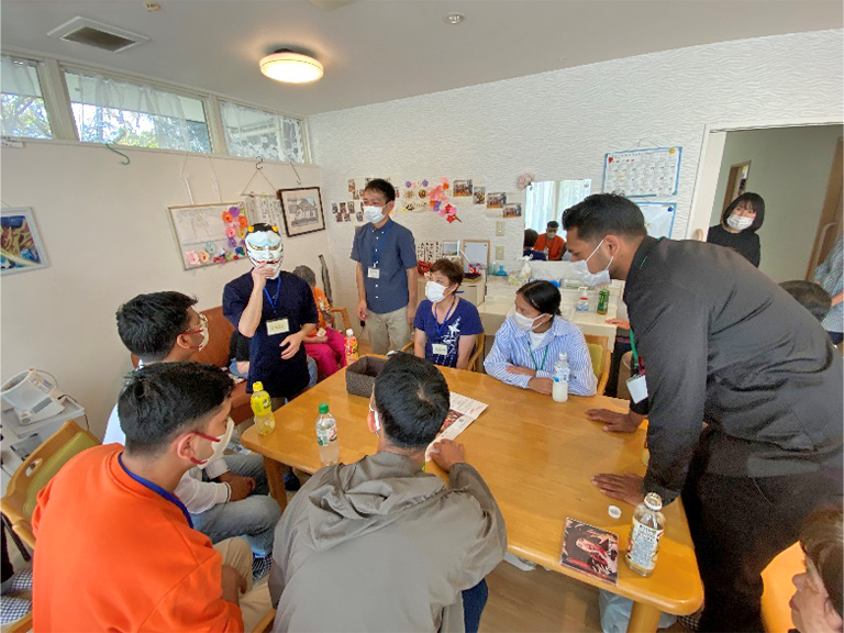 グループホームの利用者さんは、お客様が来ることをとても喜ばれ、会ってすぐに、「ネパールのあいさつを教えて」と会話が弾み「ナマステ」と手を合わせて笑顔であいさつをしていました。
