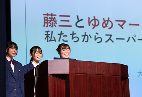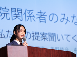 「こんなに大きなホールを借りて発表することになると思っていなかったので、今日のスケール感にびっくりしました。私は『親子連れにやさしい理想のスーパーをつくる』案を考えたグループに所属していたのですが、お金や場所といった問題にぶつかり、もっと現実味があるアイデアにできないだろうかと、何度も頭を悩ませました。地域の人に提案するなかで、有効なアドバイスをいただいたり、『それいいね!』と言っていただけて、とてもうれしく充実した時間でした。自分が親になった時の目線も学べて良かったです」