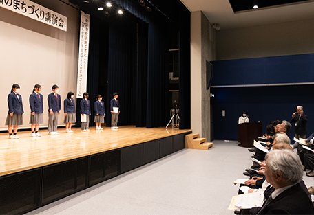 これまでの活動では文化祭が最終発表の場でしたが、「地域の人へ広く発信できる場があれば」という学校側の声を受け、同講演会で発表の運びに。プロジェクトに関わってきた大人や地域の人たち、子どもたちの活動を知りたいというまちの人が多く訪れ、終始熱気に満ちた会となりました。