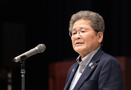 講演会は、東広島市社会福祉協議会 副会長 兼 安芸津中学校運営協議会 会長の倉本正行さんの挨拶でスタート。「今日の子どもたちの発表を通じて、世代を超えて支え合うヒントを見つけられたらいいなと思います。皆さん、ぜひ温かな気持ちで子どもたちの提言を聞きましょう」という言葉に、会場からは自然と拍手が起きました。
