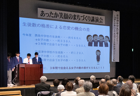 中学生たちが「あったか笑顔のまちづくり講演会」で地域住民に提言した内容は、安芸津町の住民が抱えている地域課題とつながっていることがわかった。
